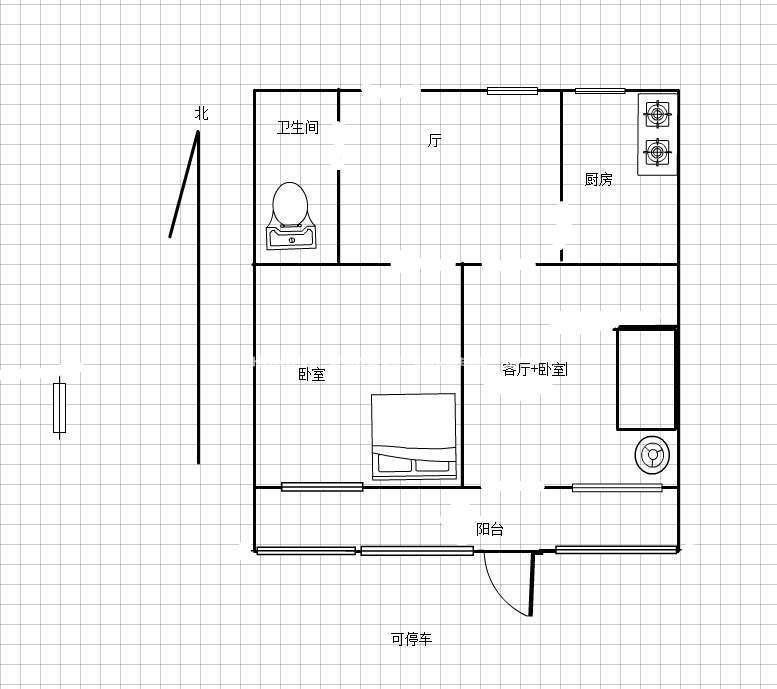 厅室2室1厅1卫1阳台