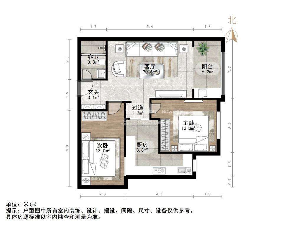 朝向南北 建筑面积86.16㎡