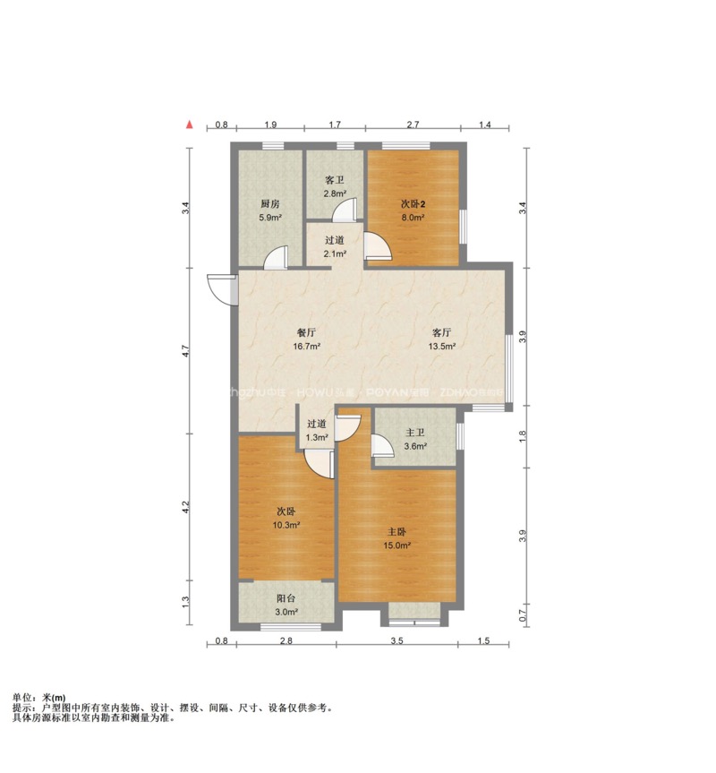 厅室3室2厅2卫1阳台