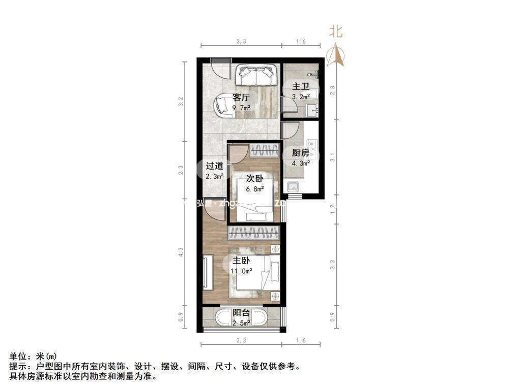 厅室2室1厅1卫1阳台
