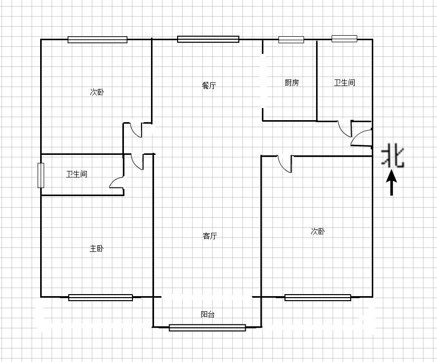 厅室3室2厅2卫1阳台