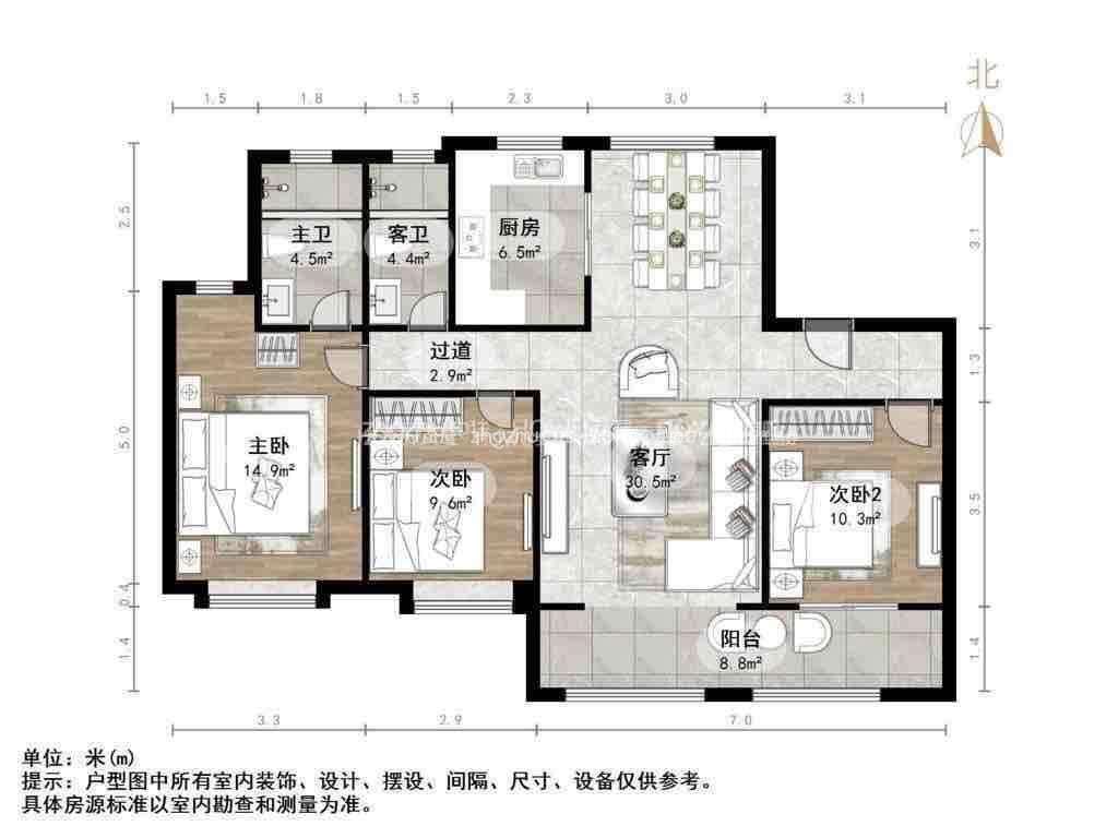 朝向南北 建筑面积145㎡
