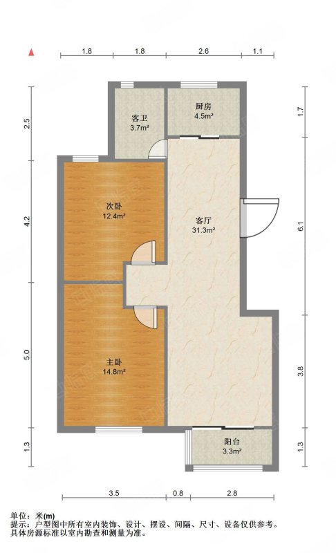 厅室2室2厅1卫1阳台