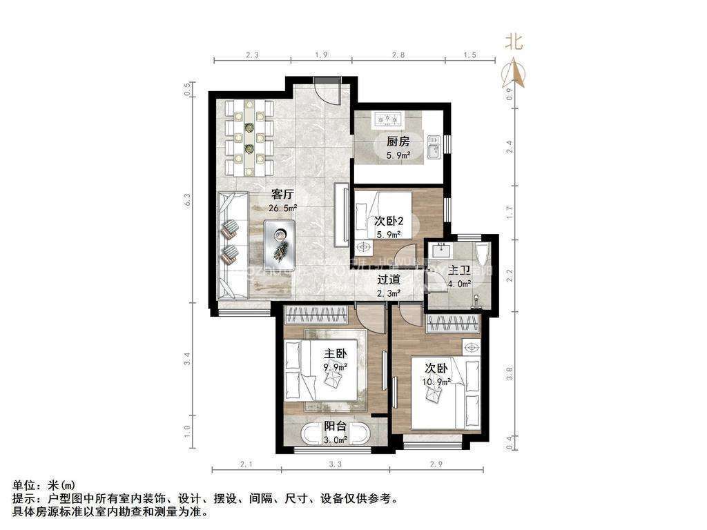 朝向南北 建筑面积101㎡