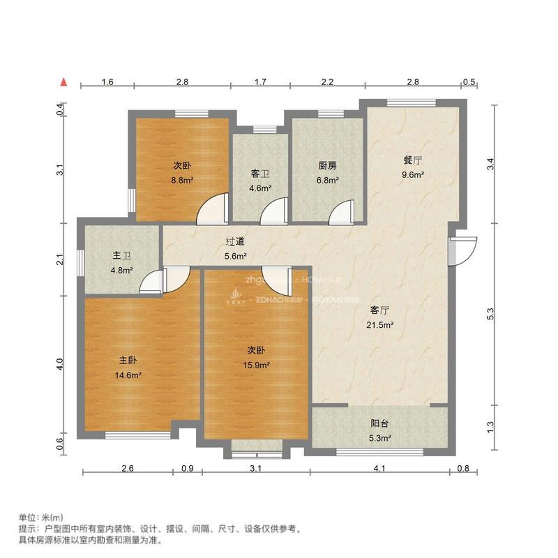厅室3室2厅2卫1阳台