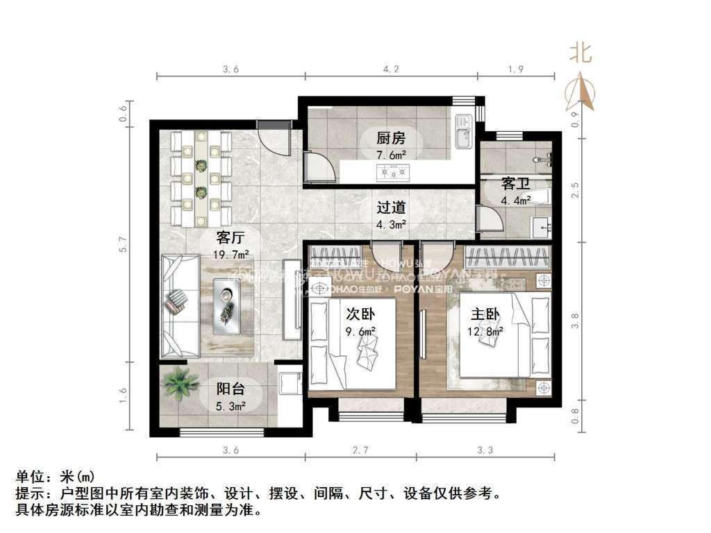 厅室2室1厅1卫1阳台