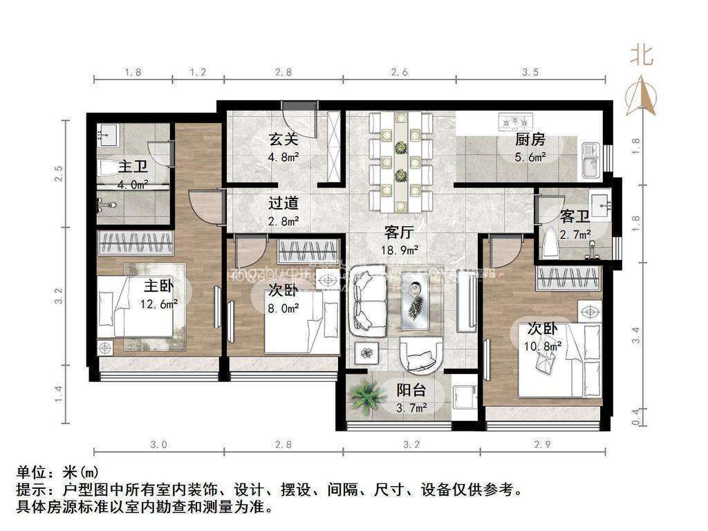 朝向南北 建筑面积113.01㎡