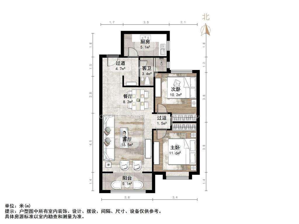 厅室2室2厅1卫1阳台