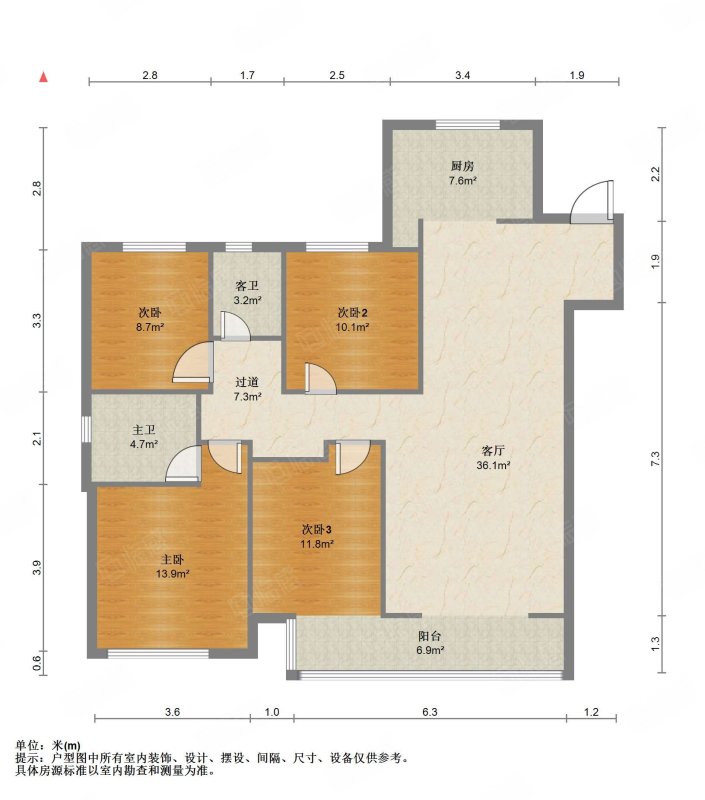 厅室3室2厅2卫1阳台