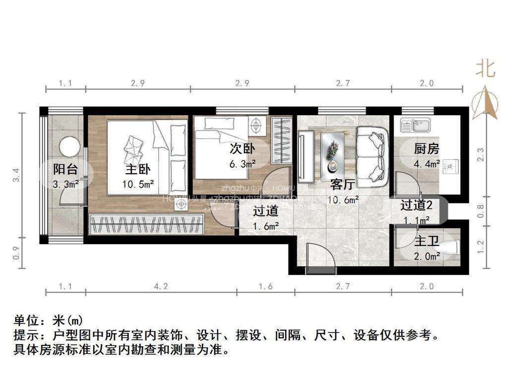 朝向南北 建筑面积60㎡