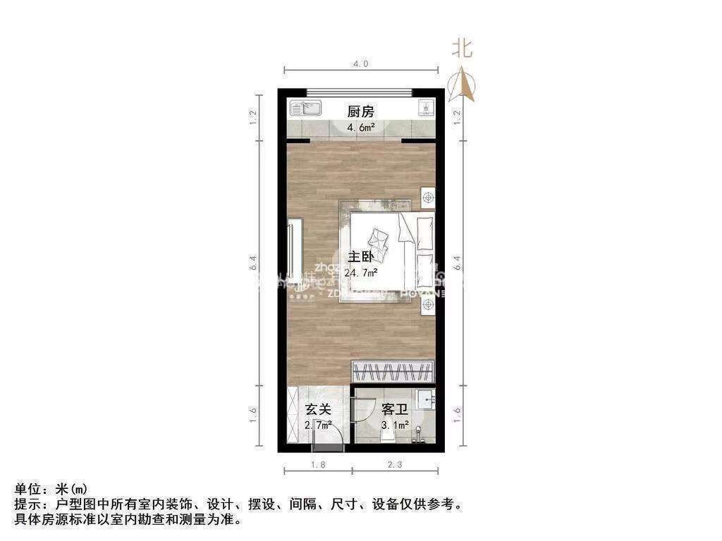 朝向北 建筑面积51㎡