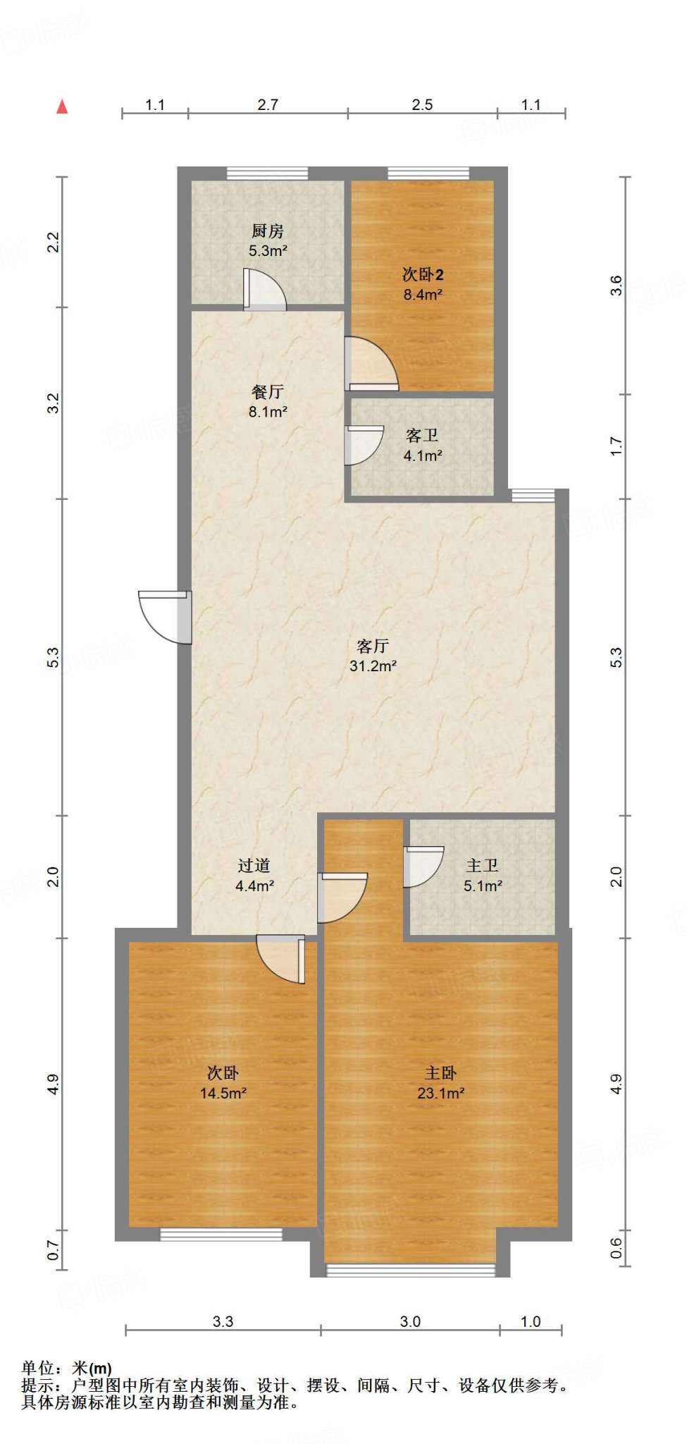 厅室3室2厅2卫1阳台