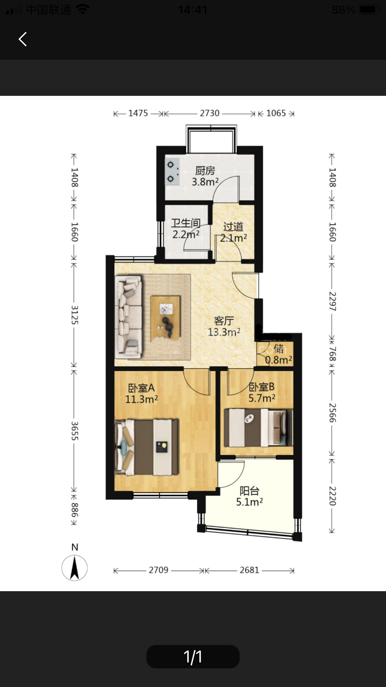 厅室2室1厅1卫1阳台