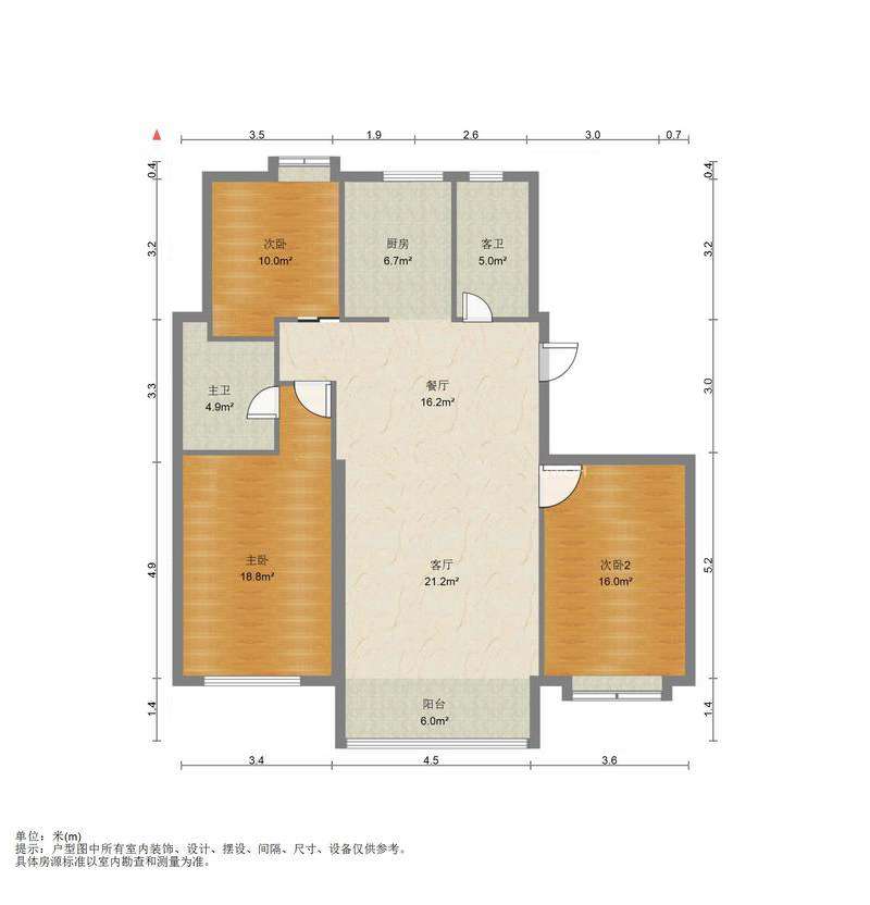 厅室3室2厅2卫1阳台