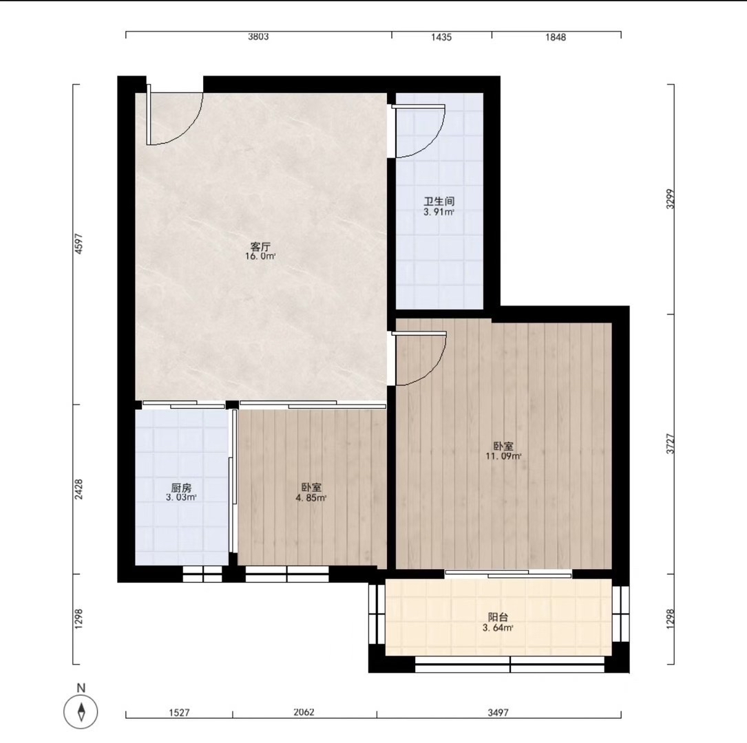 厅室2室1厅1卫1阳台