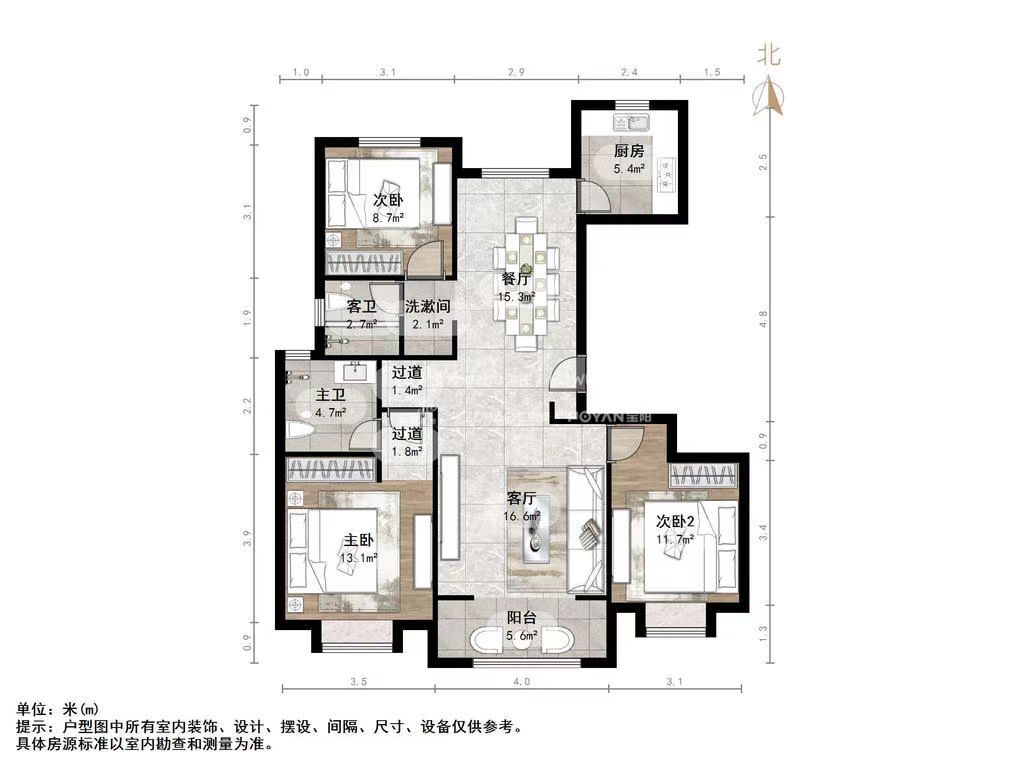 厅室3室2厅1卫1阳台