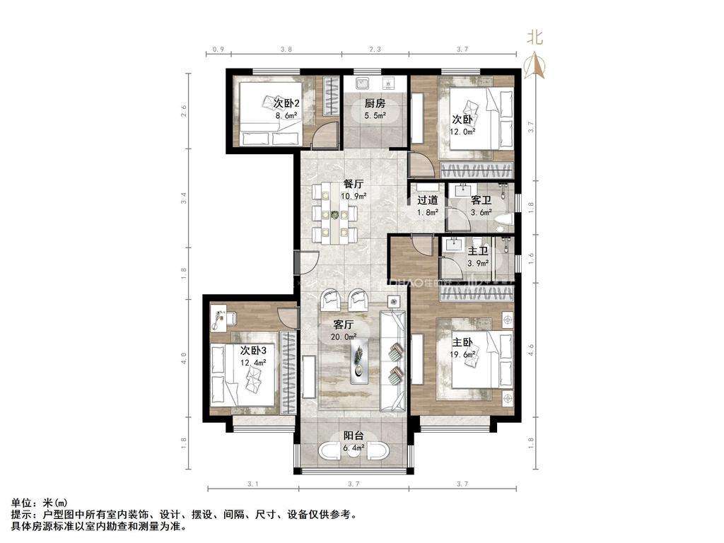 厅室4室2厅2卫1阳台