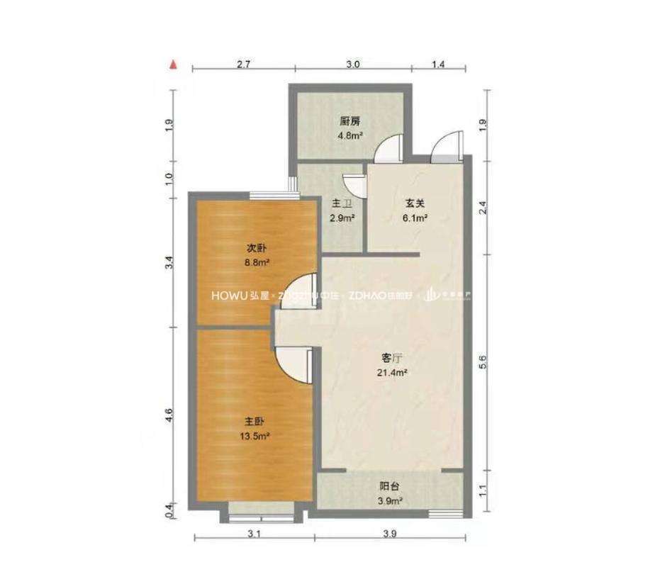 厅室2室2厅1卫1阳台