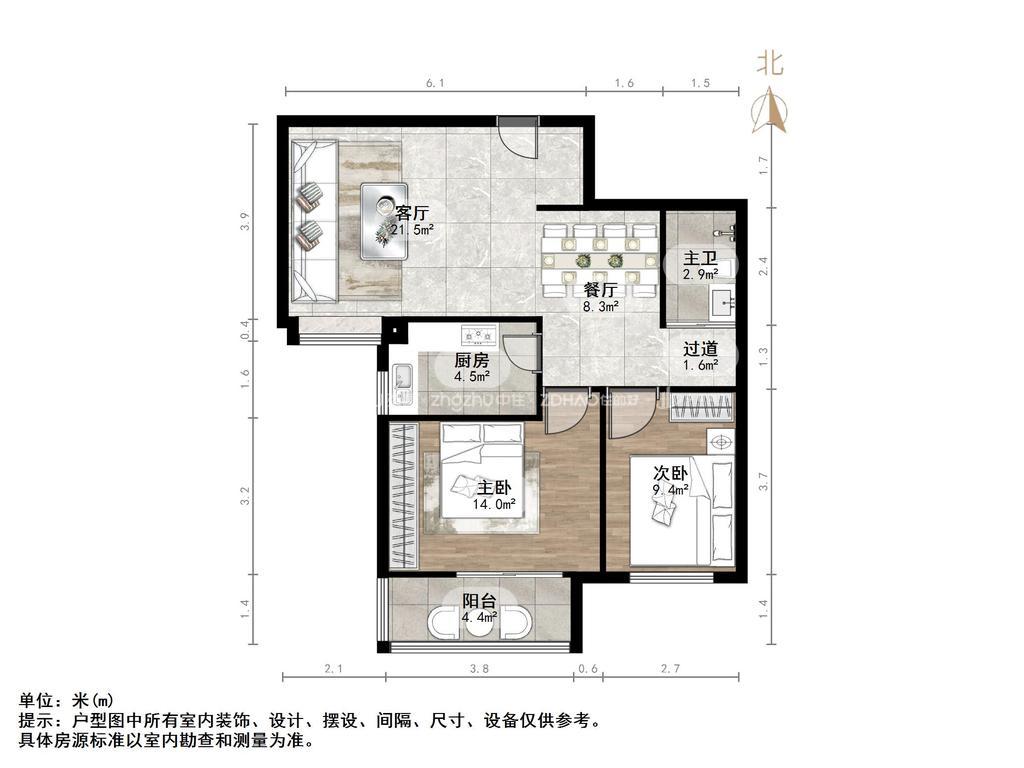 厅室2室2厅1卫1阳台