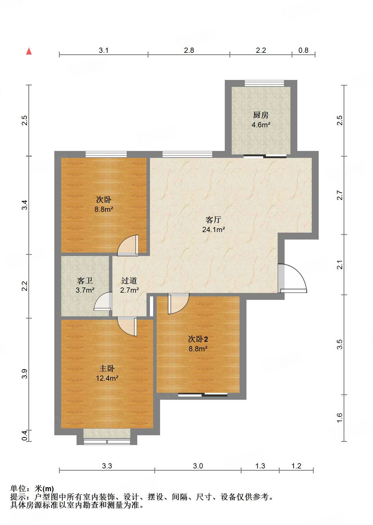 厅室3室2厅1卫1阳台