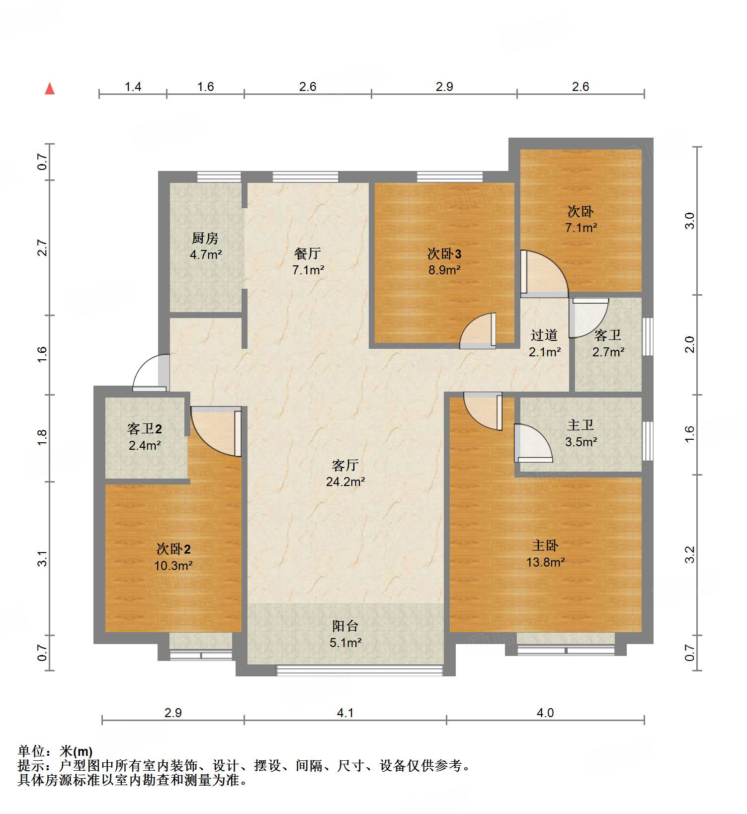 厅室4室2厅2卫1阳台