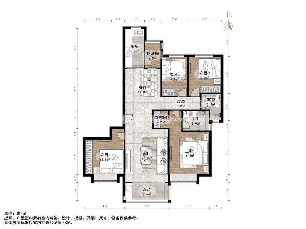 厅室4室2厅2卫0阳台