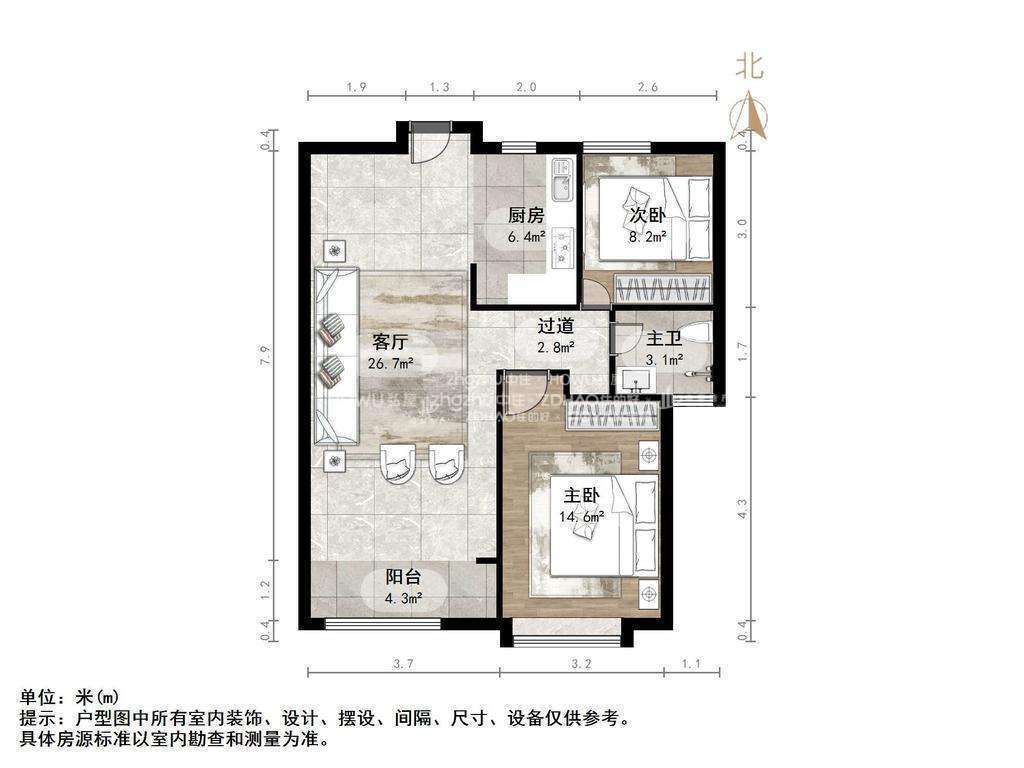 厅室2室2厅1卫1阳台