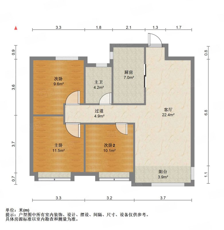 厅室3室2厅1卫1阳台