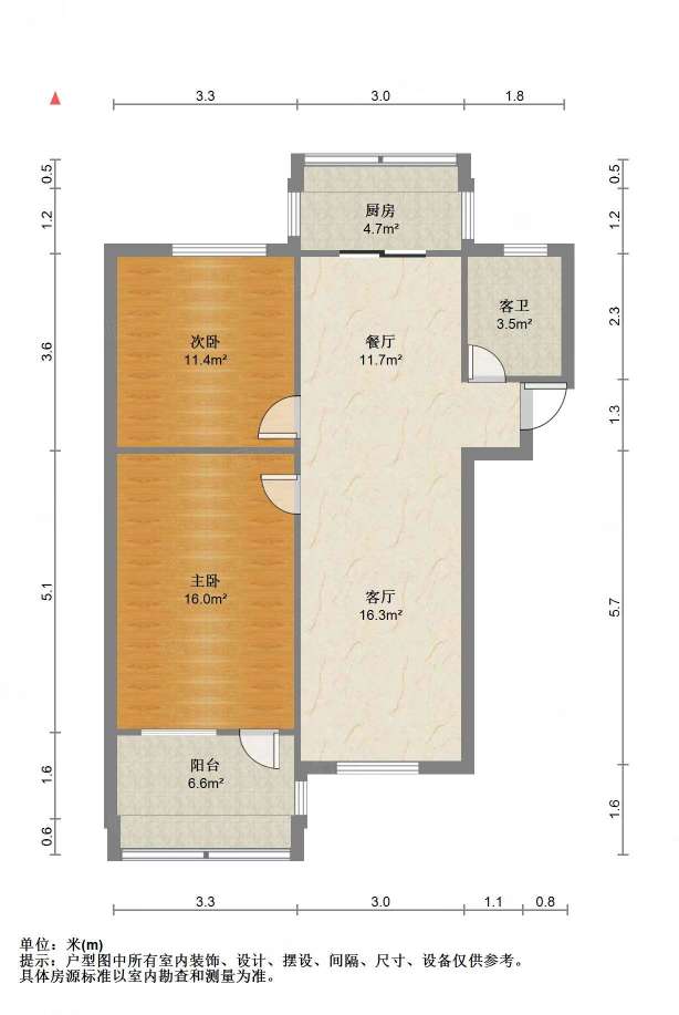 朝向南北 建筑面积87.88㎡