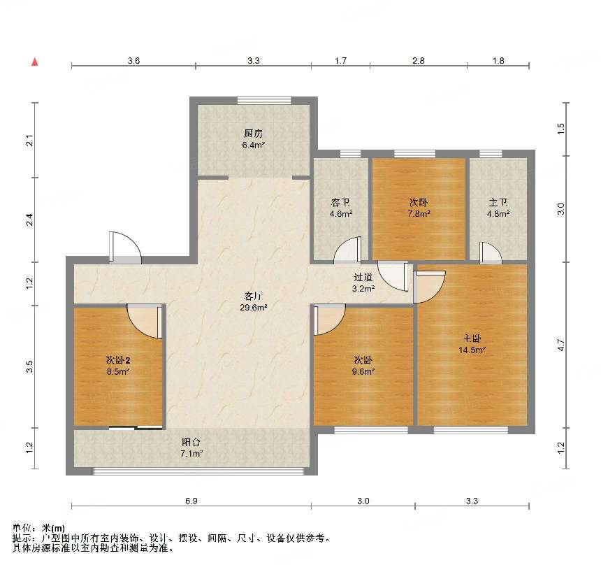 厅室3室2厅2卫0阳台