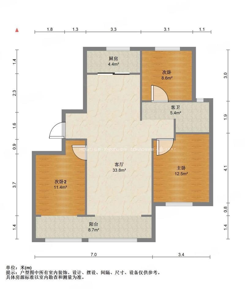 厅室3室2厅1卫1阳台