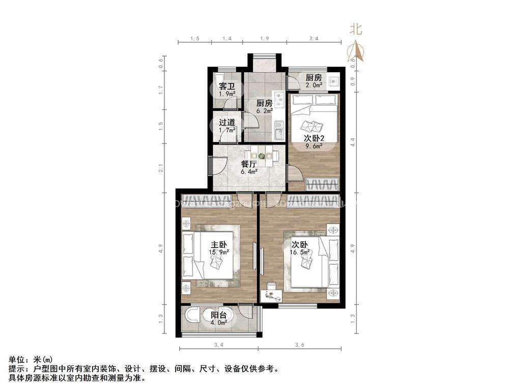 朝向南北 建筑面积60㎡