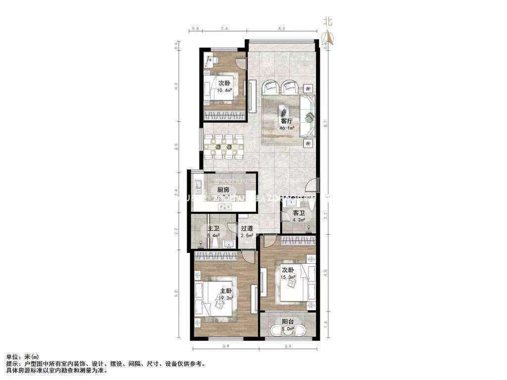 厅室3室2厅2卫1阳台