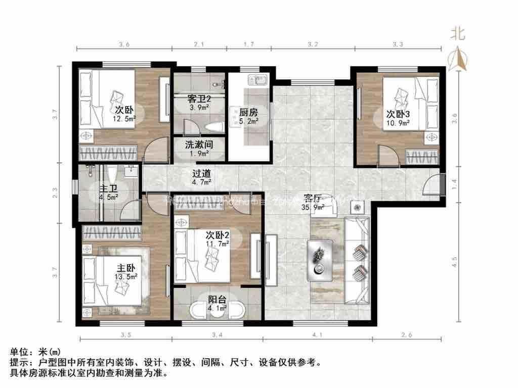 厅室4室2厅2卫1阳台