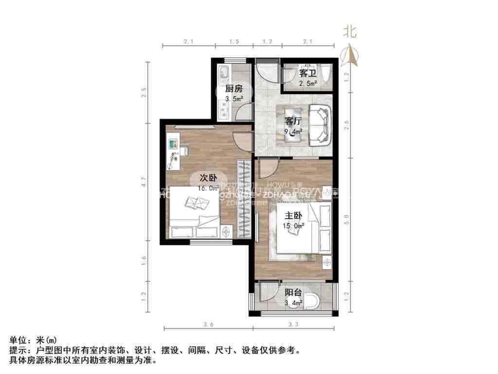 厅室2室1厅1卫1阳台