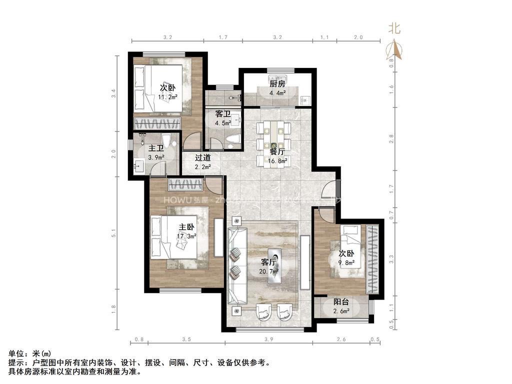 厅室3室2厅2卫1阳台