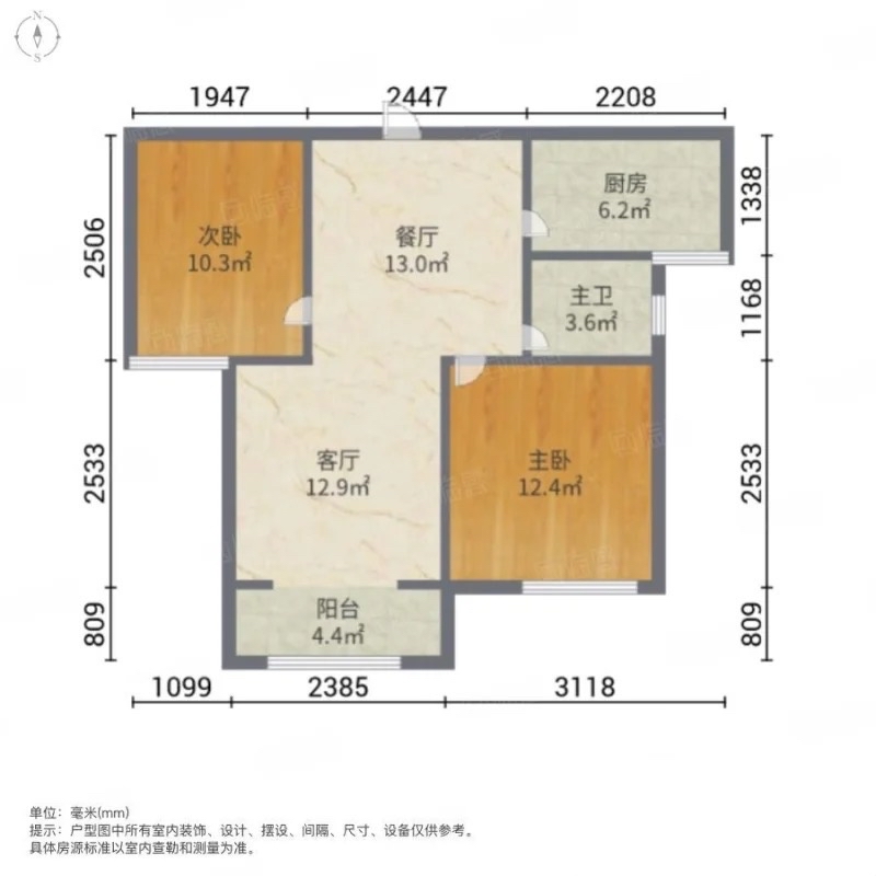 厅室2室2厅1卫1阳台