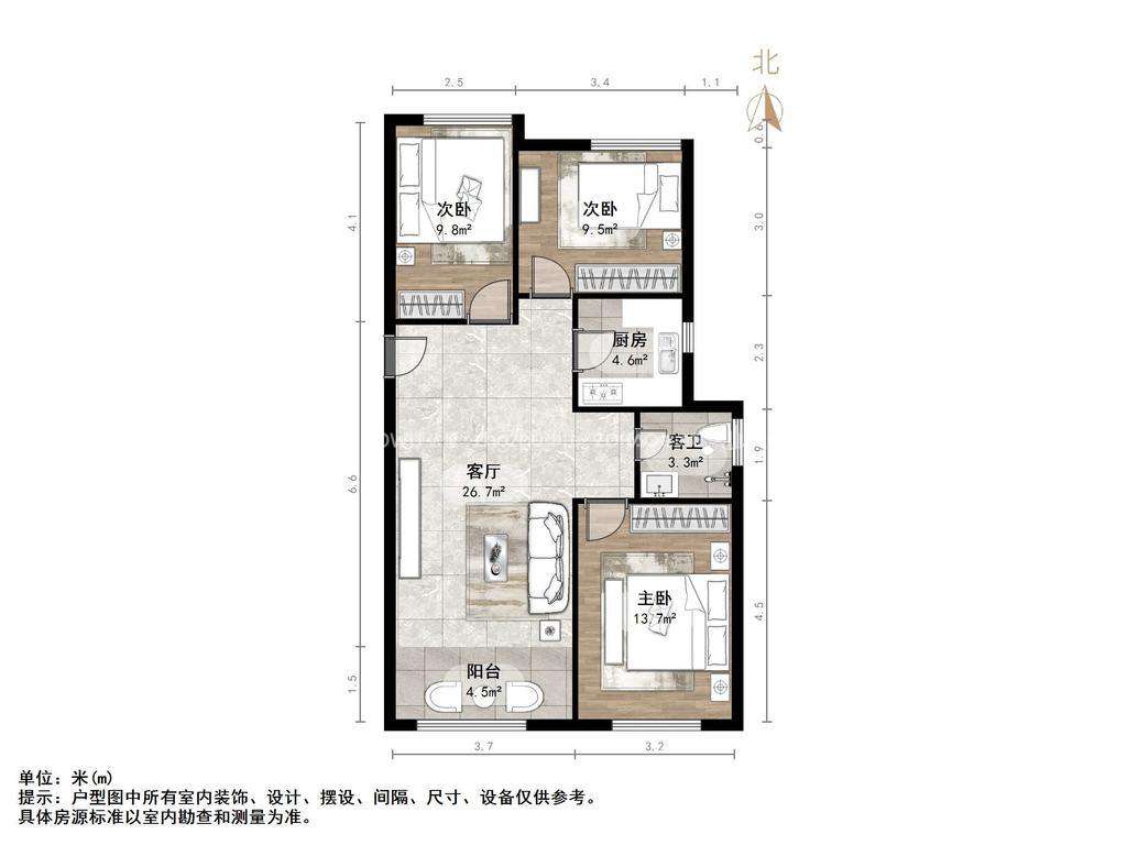 朝向南北 建筑面积107.69㎡