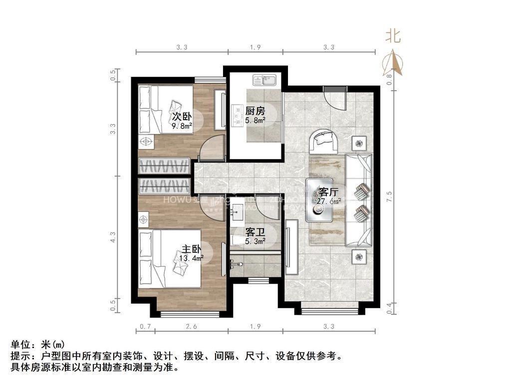 厅室2室2厅1卫1阳台