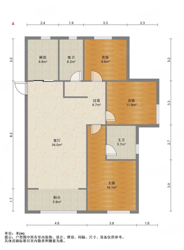 厅室3室2厅2卫1阳台