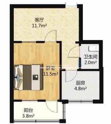 厅室1室1厅1卫0阳台