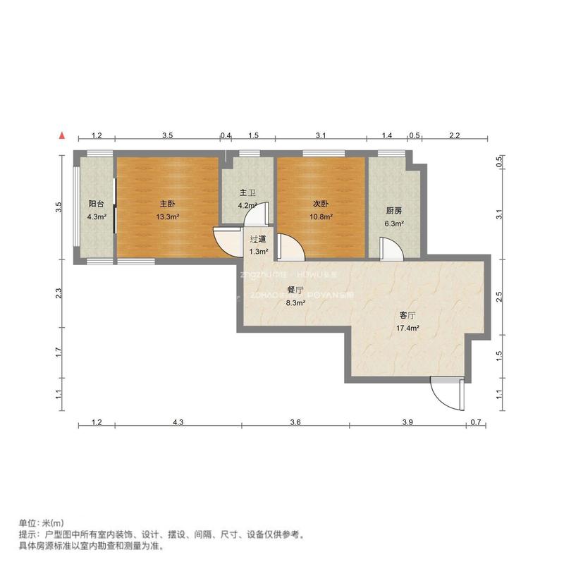 厅室2室1厅1卫1阳台