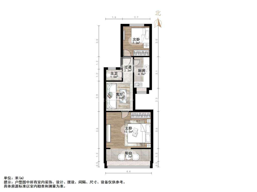 厅室2室1厅1卫1阳台