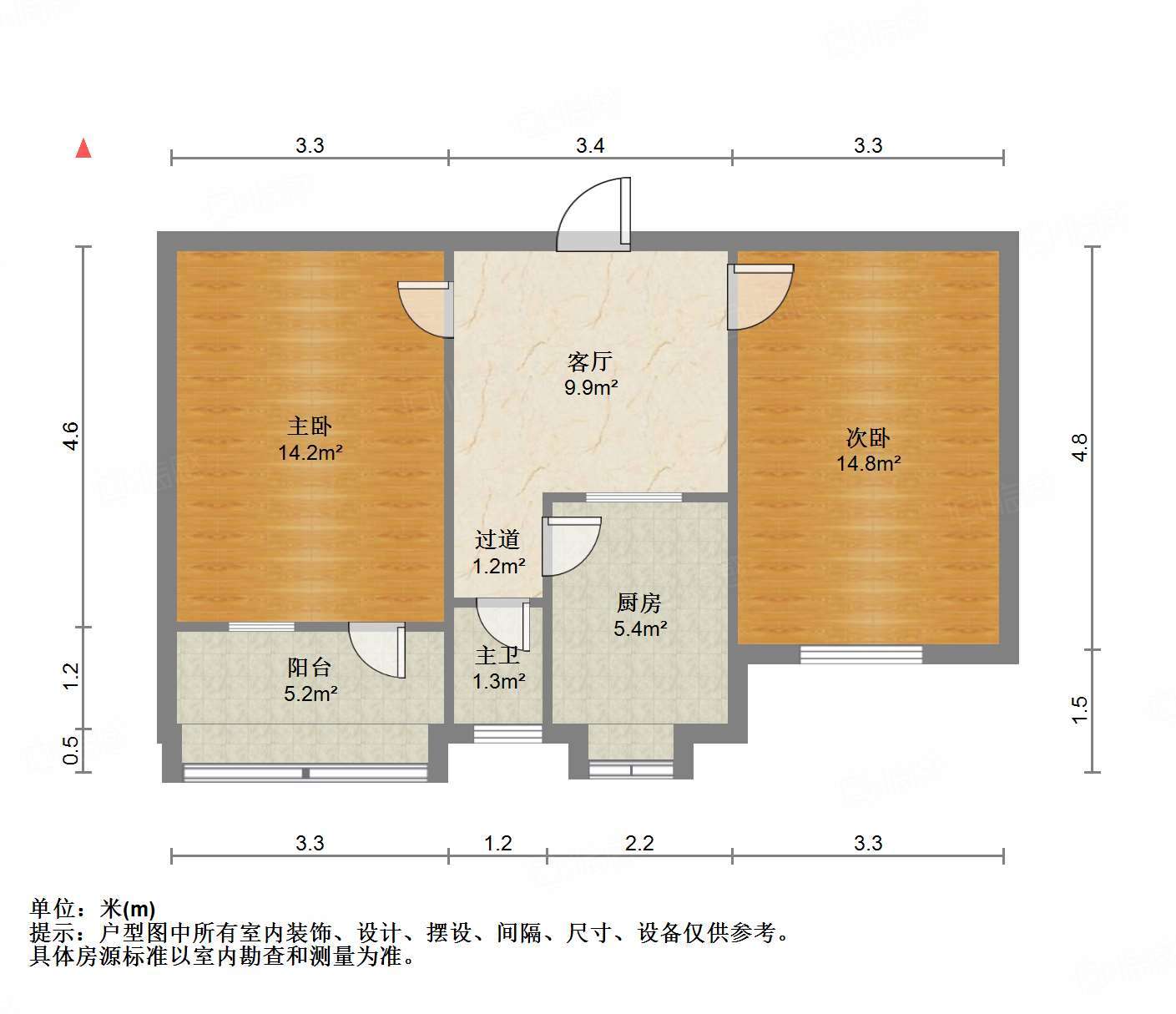 厅室2室1厅1卫1阳台