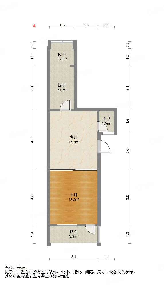 厅室1室1厅1卫1阳台