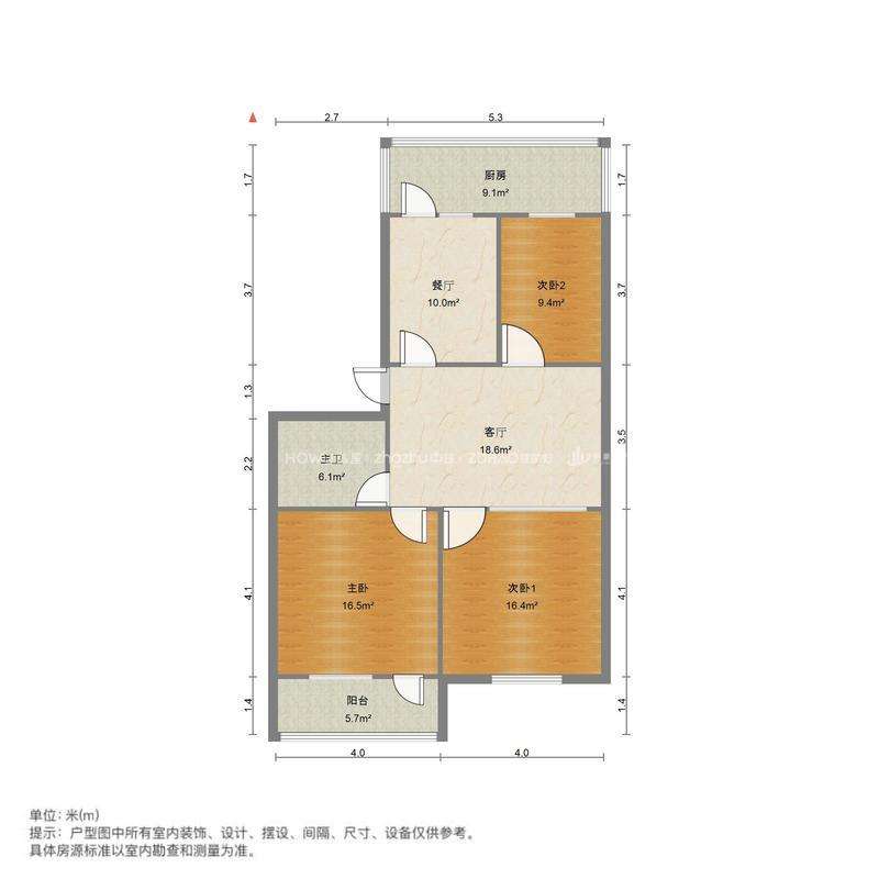 厅室3室2厅1卫1阳台
