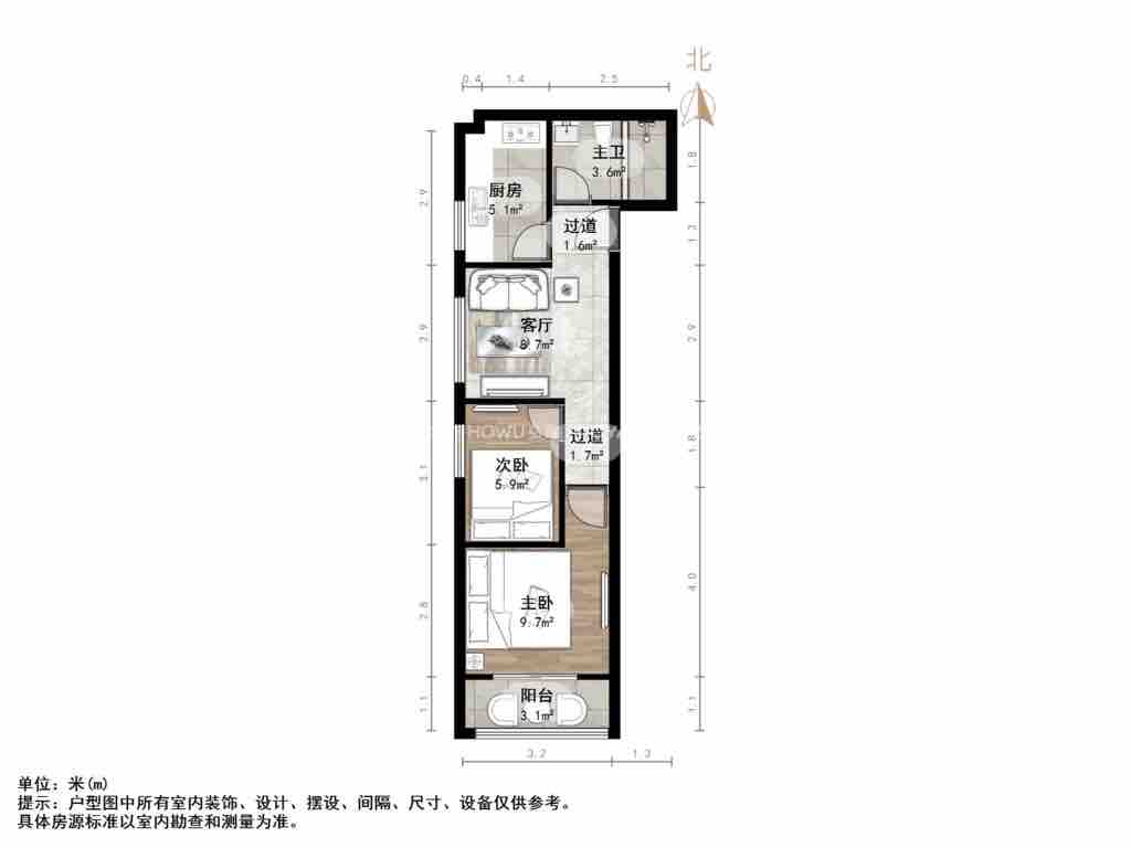 厅室2室1厅1卫1阳台