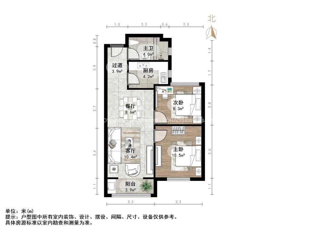 厅室2室1厅1卫1阳台