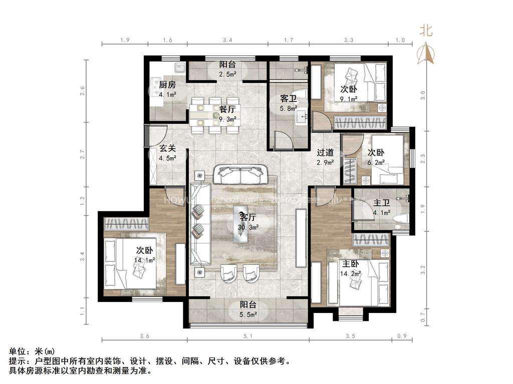 厅室4室2厅2卫2阳台