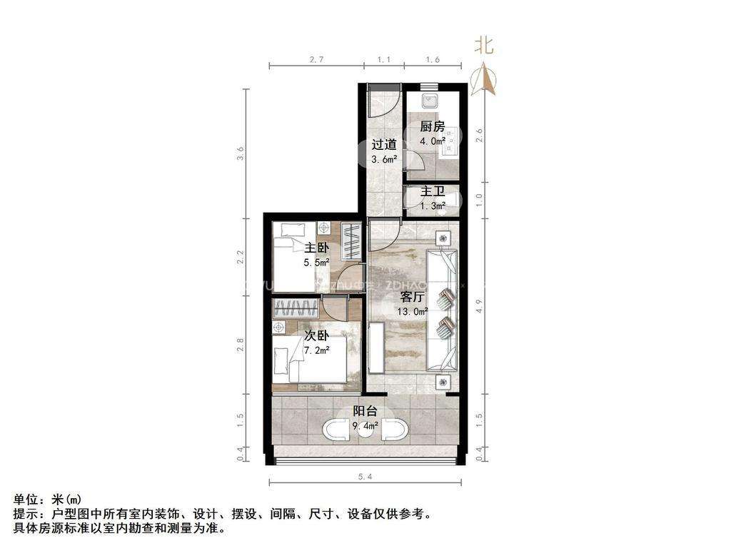 朝向南北 建筑面积54.91㎡
